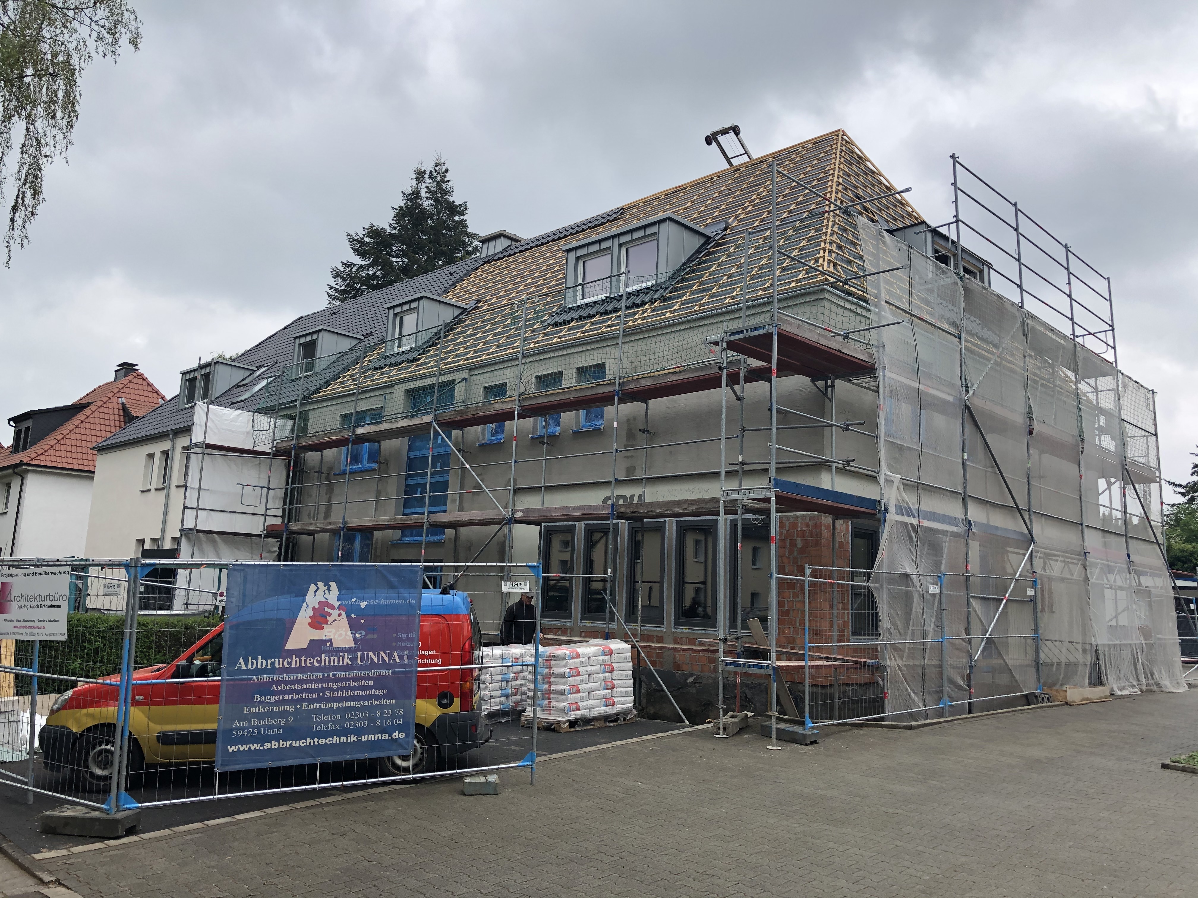 Energetische Gebäudesanierung des 5-Familienwohnhauses (Fassade, Dach, Wohnungen, Balkone, Bäder, Heizung, Elektro, Außenanlagen)