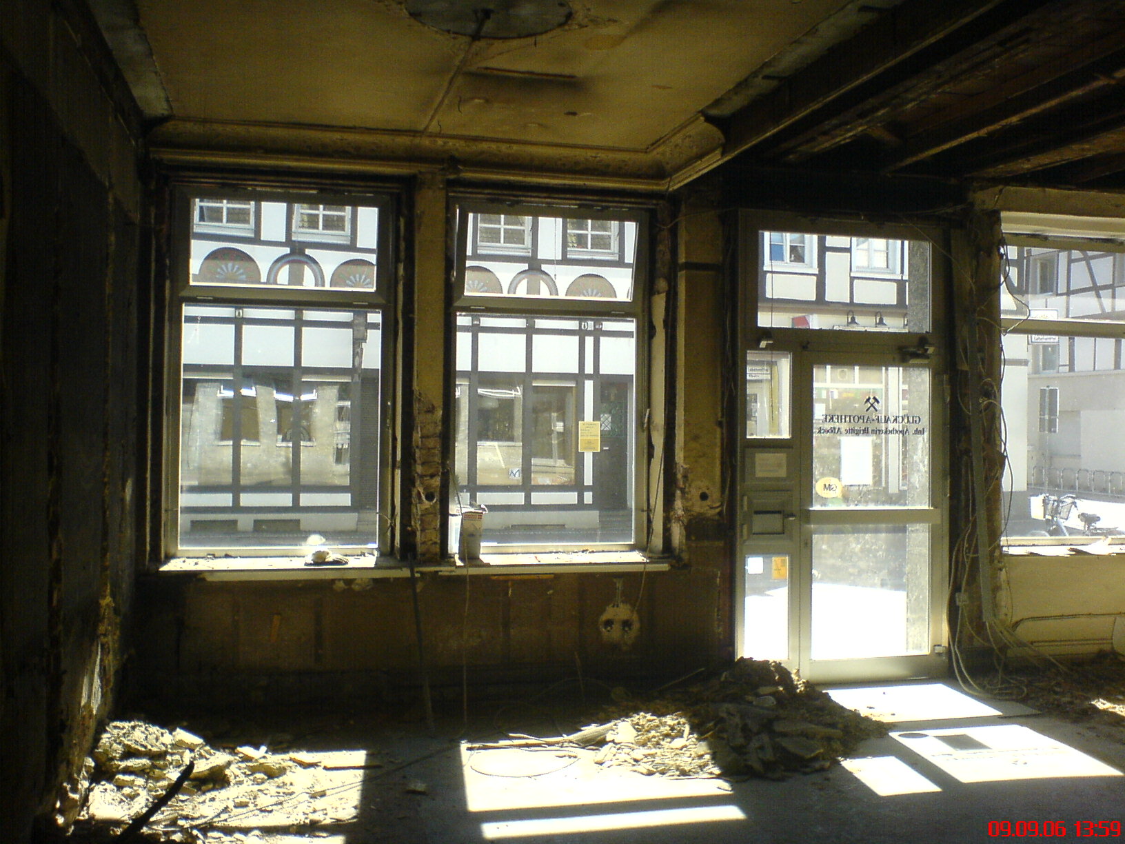 Fassadensanierung, Umbau u. Instandsetzung des Erdgeschosses (ehem. Apotheke) in ein Cafe